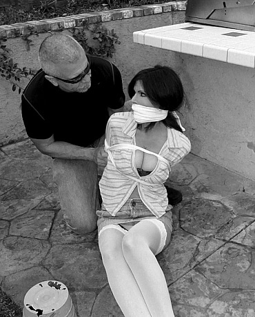 Tied up tight with a mouth stuffing gag!