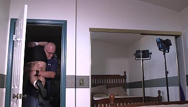 A man carries a woman over his shoulder into a room. She struggling tied up, hooded and from the sound of things, she is gagged too. He throws her down on the bed and removes the pillowcase hood from her head and we see it is Rachel Adams with a ball gag in her mouth. After the man hogties her, he re-gags her by stuffing and taping panties in her mouth. He then makes sure she stay secure on the bed by throat roping her tethering her to the bed frame