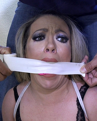 Carmen is in her hotel room when she makes a call to order Room Service. She tells them that she will leave the door ajar so they can deliver while she gets ready to go out later. Later, she hears someone come in and believes her room service order is delivered. Then sometime later, believing they have come and went, she comes out of the bathroom in her underwear. That is when she sees a man in her room who is obviously not Room Service. The next thing she knows, Carmen finds herself tied up and gagged in the small kitchen area of her hotel suite. She struggles hard to get loose, but it is no use, she is tied too tight. Later, the man comes back to her before he makes his get away. When he leaves her with her tits out and her panties down, you have to wonder what he did to her.