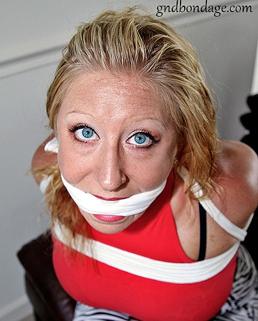 Party Girl finds herself hogtied and gagged with her tits out