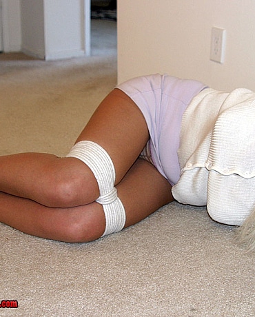 Busty blond MILF tourist kept tied up in her pantyhose