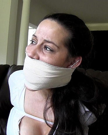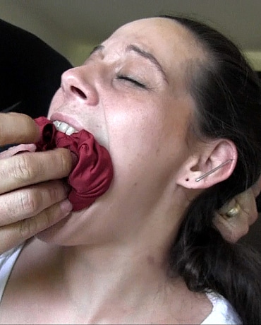 Helpless spy girl left gagged tight and elbow tied with clothesline
