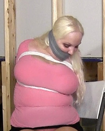 Sometime later, Michelle finds herself tied up on a chair and this has her very turned on. Although she is tied very tight, she is so excited that she hardly notices the pain. This is until the man tells her that he is going to gag her. Michelle refuses to be gagged and tells the man that he better not. She even starts to demand that he untie her. As he leaves her, she becomes very upset and threatens to tell her step-mother about this. Now all alone, Michelle seems to be very upset. But then as she starts to talk out loud to herself, the truth comes out. "I cannot believe how turned on I am" She says. "If he gag me, it is going to put me over the edge!" she admits. "Oh my gosh! I am going to Cum in my panties! She says just before the man returns. Michelle moans loud as the man stuffs panties in her mouth and then wraps tape around her face to gag her. Sure enough, this puts Michelle over the edge and her moans get very loud. Soon she cannot control herself and she starts bouncing around on the chair trying to increase the effect that being bound and gagged has on her. It doesn't take her too long until Michelle's moans turn to muffled scream when she actually Cums in her panties. Now it is the man's turn to put his new plan into motion. He brings out a camera and tells Michelle that if she says anything about this to her step-mother or anyone else, he will post pictures of her tied up and gagged on the internet. Then before he starts shooting photos, he pulls Michelle's great big boobs out of her bra. As Michelle struggles on the floor, she has no choice but to pose for her neighbor's photos. She grunts and whimpers through the gag and the man knows exactly what she is trying to say. He knows that she is begging him not to post the photos and she is also promising not to say anything to her step-mother. What he doesn't know is Michelle is also begging him to pull her pantyhose and panties down so he can finish what they have started.