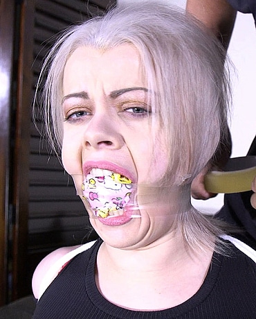 Nadia and her partner are holding this man's wife hostage. Today Nadia is at the man's hose to collect the ransom. But instead of giving her the money, the man brings out rope. Before Nadia can do anything, he grabs her and ties her up. He then stuffs and tapes panties in her mouth to gag her. With Nadia now struggling bound and gagged, the man calls her partner. He lets him know that unless he gets his wife back safely, he will be keeping Nadia. After hanging up, the man tires Nadia more securely. When her partner calls back to tell the man that he will accept his deal and tells him where he can find his wife, the man hogties Nadia. He them leaves her goat roped with her big tits out while he goes to get his wife.
