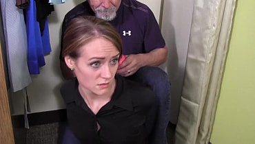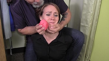 Madalynn's husband has something this man wants and when he refuses to give it up, the man takes Madalynn. He has her bound and gagged in a closet when he calls her husband where he lets her explain her situation. After, when he leaves her gagged in the closet again, Madalynn tries to get to the telephone, but is caught by the man and now she finds herself struggling bound and gagged, hogtied on a bed.