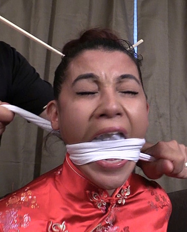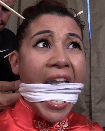 He came to this massage parlor hoping for more than a massage. When he told Sahrye, the receptionist that he actually wanted her to perform the massage, she told him that she was not available for what he wanted. The man explained that he really didn't need a massage, but instead a good time with her, Sahrye told him to leave or she would call in security. Not wanting this to happen, the man grabbed Sahrye and started to tie her up. Once the man had her secured, Sahrye tried to cry iut for help. So the man stuffed her mouth and tied a rag between her teeth to gag Sahrye. After leaving her to struggle bound and gagged for some time, the man returned and using more rope, he tied her more secure. When Sahrye was able to spit the wad of panties out of her mouth, the man re stuffed her mouth and then tied a knotted rag in her mouth. This time much tighter. Now choking on the panties, Sahrye could hardly make a sound as the man tied a piece of rope very tightly up her crotch. He used this same piece of rope to hogtie Sahrye and now she could hardly move at all.