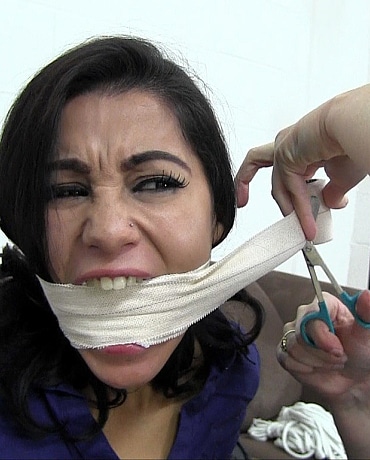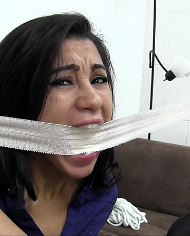 A man is after a Top Secret Zip File that Sahrye has hid at her place. Believing she is gone for the day, he breaks into her place to look for it. But all of a sudden, Sahrye arrives home. So the man has to hide and hope she leaves again. As he watches from his hiding place, he sees Elizabeth Andrews come in. It appears she is also after the same item. The man watches her grab Sahrye and tie her up with rope. Then after stuffing and taping a pair of panties in her mouth to gag Sahrye, Liz goes about looking for the Zip Drive. When Liz finds what they are both looking for, the man comes out of hiding and ties Liz up right next to Sahrye. Then with Sahye looking on, he stuffs and tapes a pair of panties in Liz's mouth so she is gagged just like Sahrye. After adding more rope until he has both girls completely helpless, the man makes his escape. Both girl struggle bound and gagged, but refuse to help each other get loose. But sometime later, they realize that they are tied way to tight and agree to work together. Finally at one point, Sahrye gets herself untied. But after pulling the gag off, she tells Liz that there is no way she is untying her. Instead, Sahrye picks up her cell phone and dials 911 to report the robbery. She tells the authorities that she is holding one of the robbers tied up and gagged at her place.