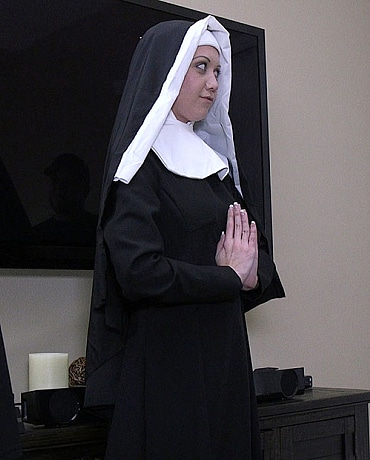 Two men are on the run from the authorities. They find a building with the door wide open. When they go inside, they find it comfortable and the perfect place to hide out. But in walks a Nun named Chrissy and she tells them to leave. When they refuse, she threatens to report them. So they grab her. As one of the men holds Chrissy, the other goes off looking for something to tie her up with. The guy holding her, wants to have some fun with her and strips her until she is in her bra, panties and pantyhose. The other returns and they tie her up. Then one of the men stuffs her mouth and tapes her to gag Chrissy. They then leave her to struggle bound and gagged. Slowly things start to happen with Chrissy. She has always been a Nun with doubts about her ability to resist the urge to play with a man. Soon being manhandled and roped up starts to do things to her and now she is very turned on. With her hands tied behind her back, Chrissy is still able to reach between her legs and she starts to rub herself. In a short while, these two men will start to notice this. Soon Chrissy will be giving them permission to do what ever they want to her.
