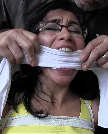 Busty trophy wife tied up and gagged with her Latina housekeeper