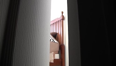 Tied naked and spread eagle on her bed